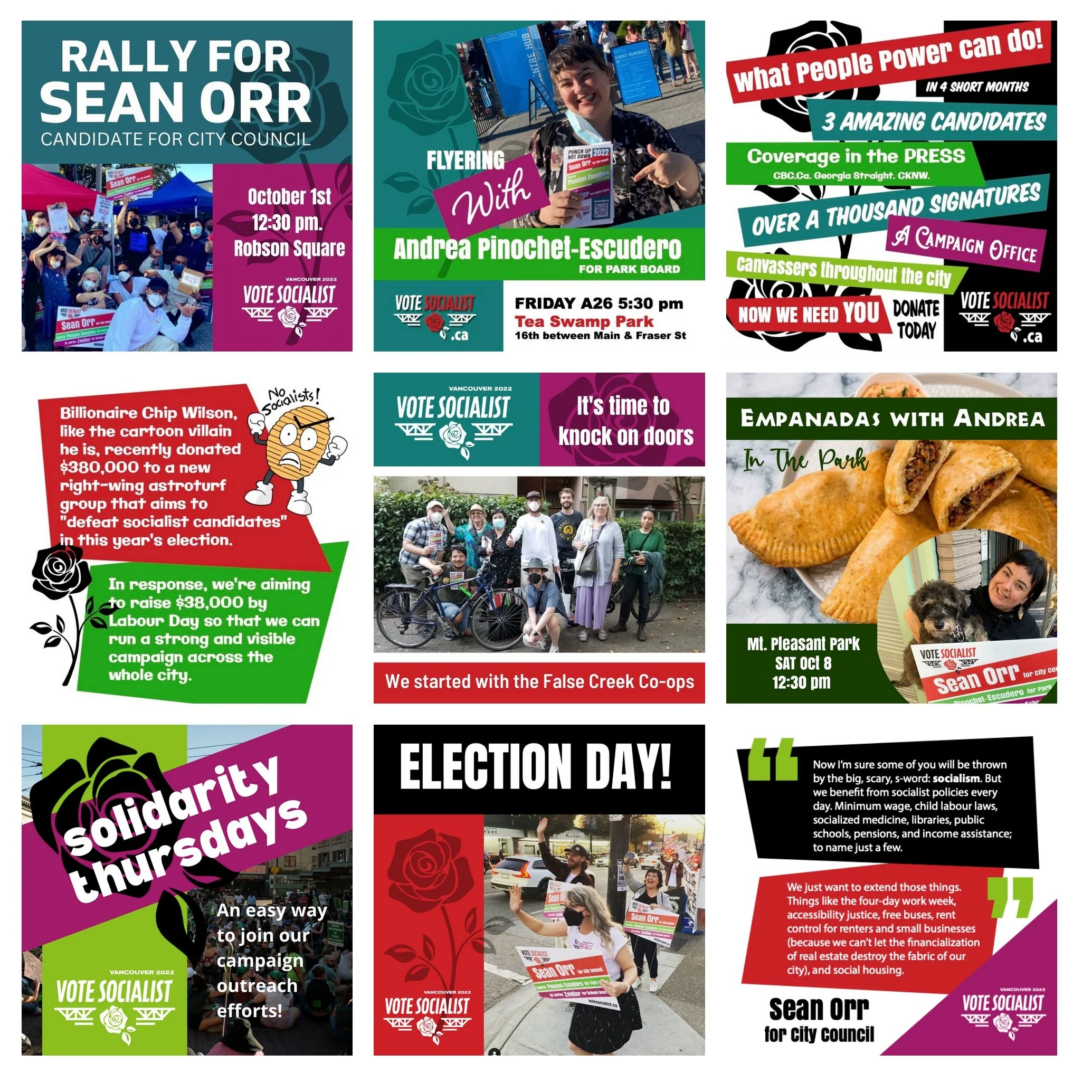 Complete branding design and dtp package for this electoral party and its candidates including posters, signs, buttons, flyers, door hangers, t-shirts, banners, press releases, socials and website.